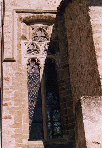 Les fenêtres sont rectangulaires, mais en arc surbaissé à l'extérieur et sont à remplage. L'élan vertical de son volume intérieur accentué par les faisceaux de colonnettes, l'ampleur et la forme inédite des ouvertures, l'élégance du portail et de niches à trois baies trilobées qui s'ouvrent dans la travée absidiale, sont autant d'éléments qui tranchent sur tout ce qu'on peut observer dans la région.